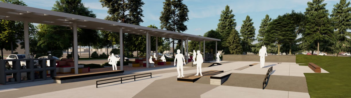 The skateboard park will feature plaza-style, low impact-low consequence features that can be incorporated into more complex combinations to suit a diverse range of users.